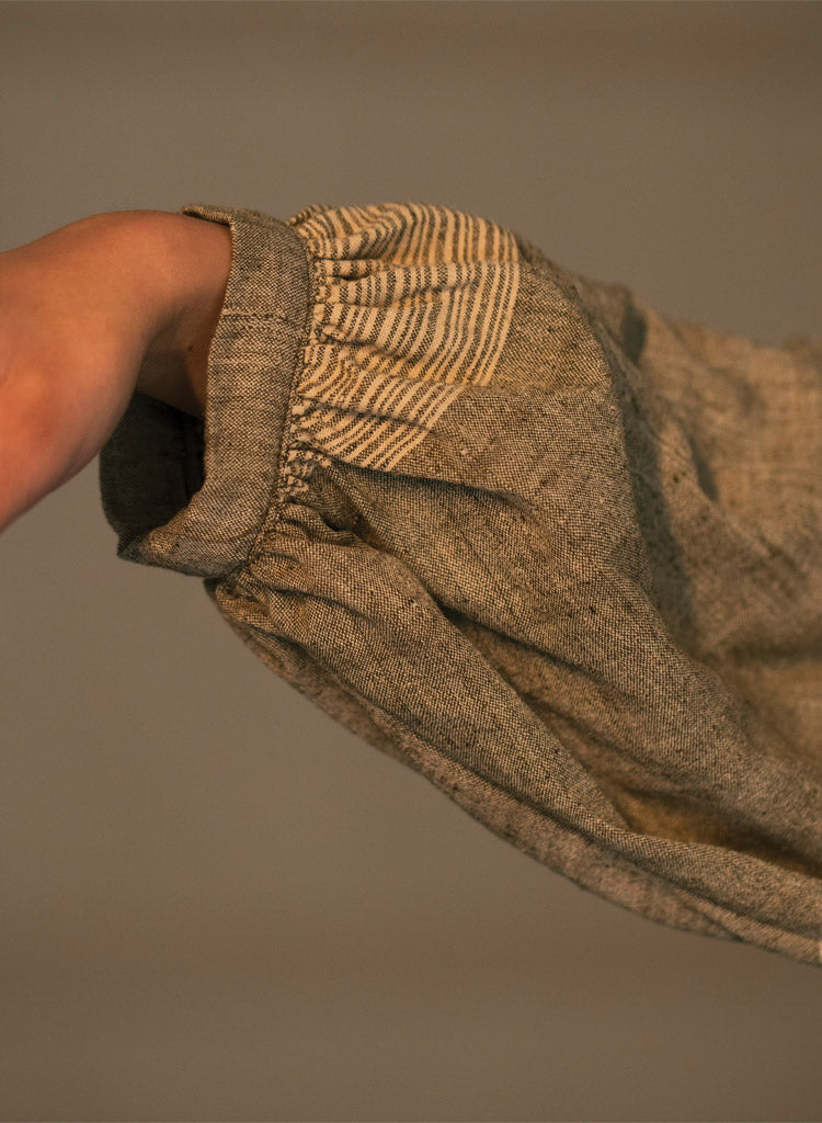 Made in Eri silk, naturally dyed with turmeric and bark of a tree.