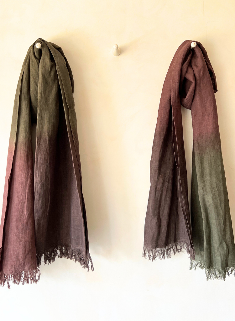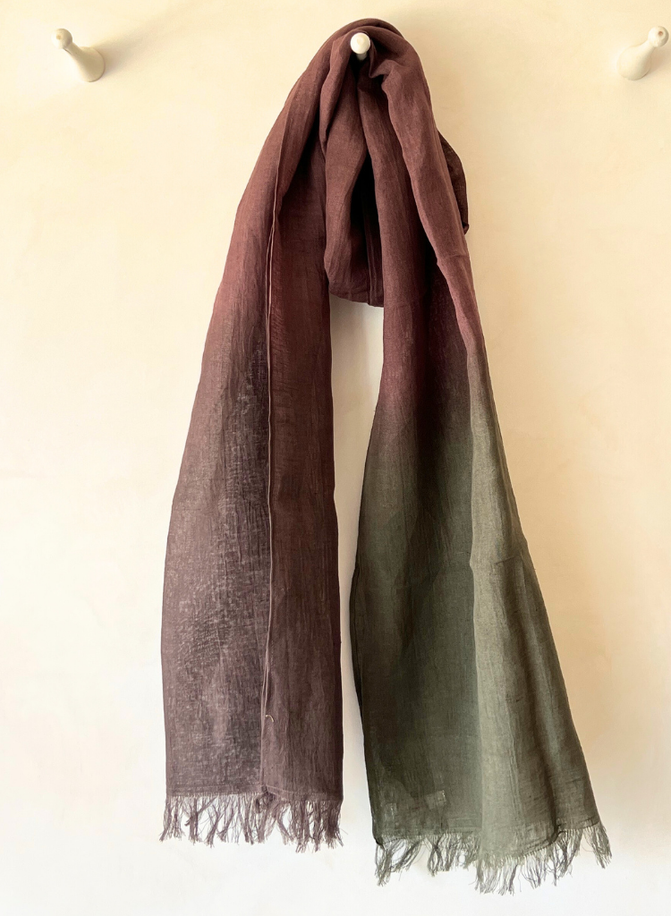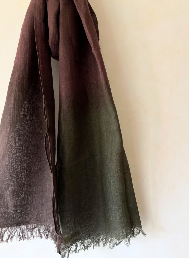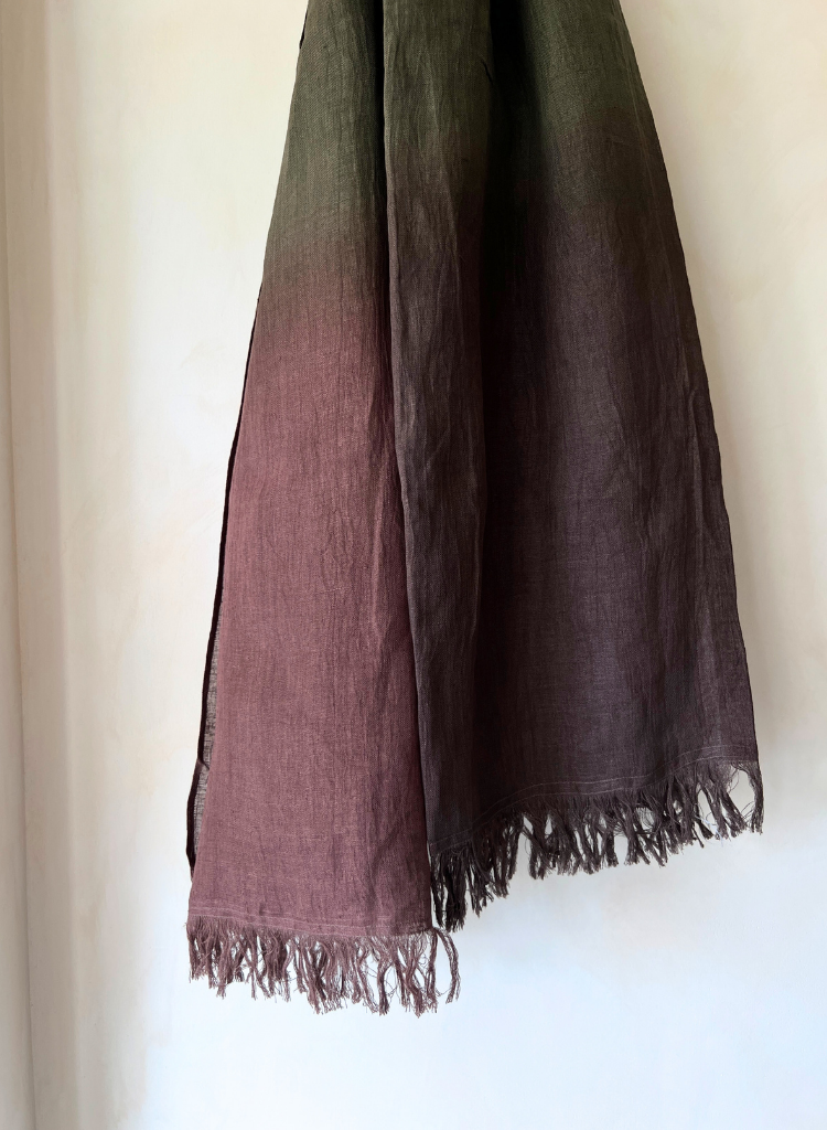 Soft, luxurious linen gradation with a breathtaking ombre effect, evoking sunset skies and gentle horizons. A wearable work of art, perfect for adding a touch of elegance to any outfit.