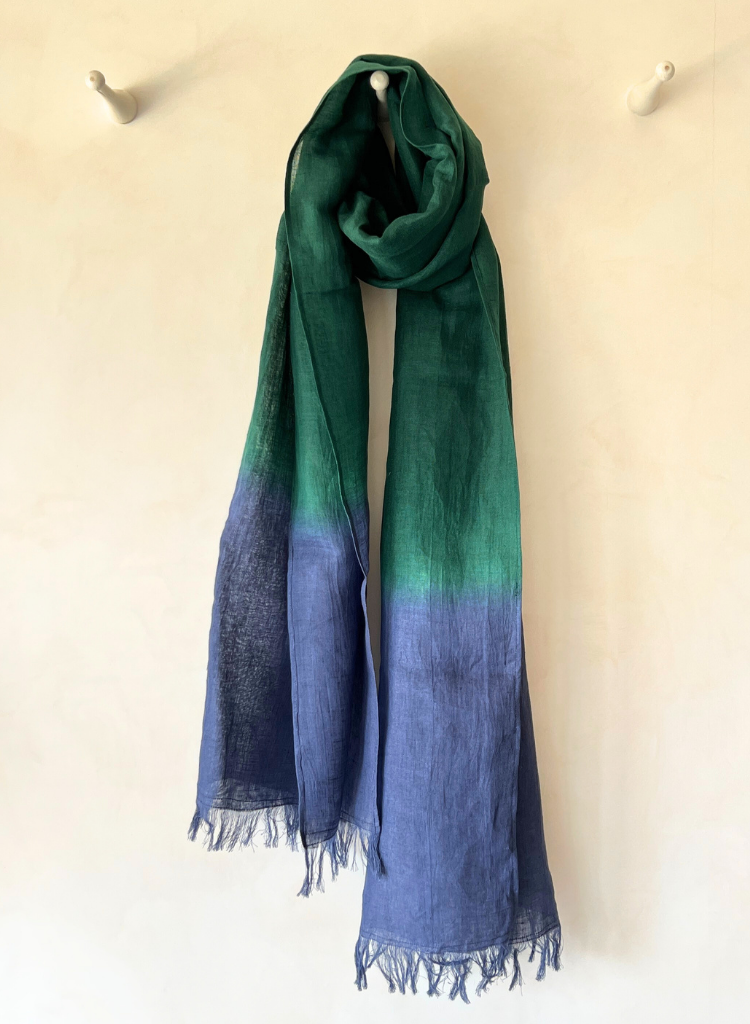 Soft, luxurious linen gradation with a breathtaking ombre effect, evoking sunset skies and gentle horizons. A wearable work of art, perfect for adding a touch of elegance to any outfit.