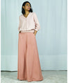 Paneled wide leg pants with side pockets and a concealed side zipper. Length 43".