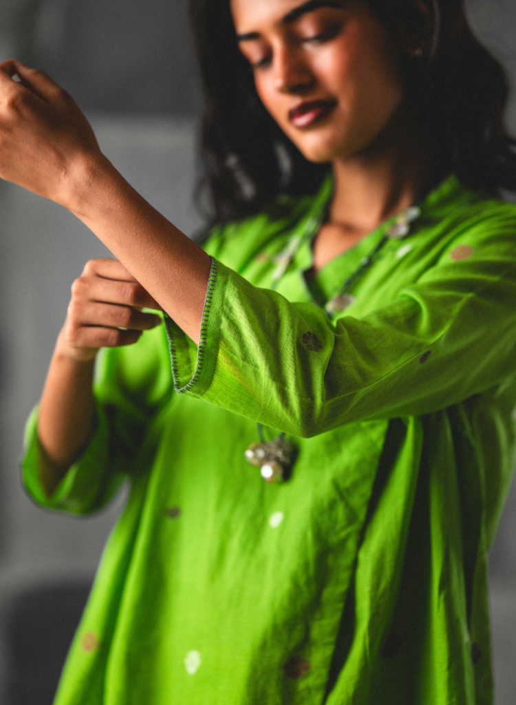 Gentle hand wash seperately in cold water with mild detergent. Dry in shade as direct sun may cause discolouration. Do not soak. Do not bleach.