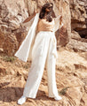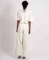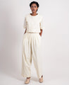 Wide leg pants with a pleated waist, side pockets and front zip closure. Length 42".