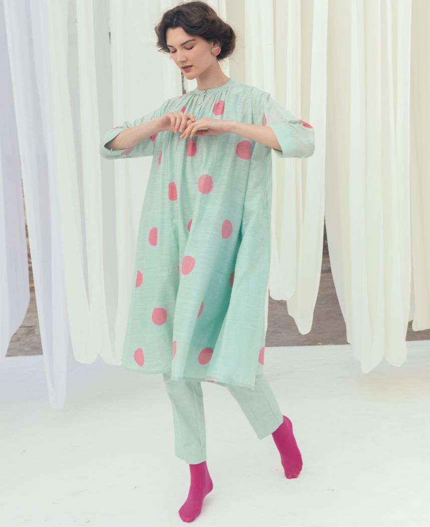 Easy straight fit pants with a clamp dye print featuring an elasticated waist and inseam pockets. Length 37". The model is 5'7.5" and is wearing a size S.