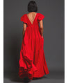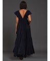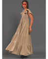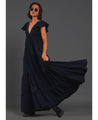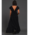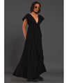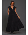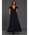 A tiered maxi dress featuring a plunging V-neck, ruffled sleeves and inseam pockets. Length 52". The model is 5'9", and is wearing size XS.