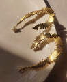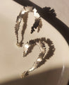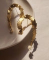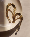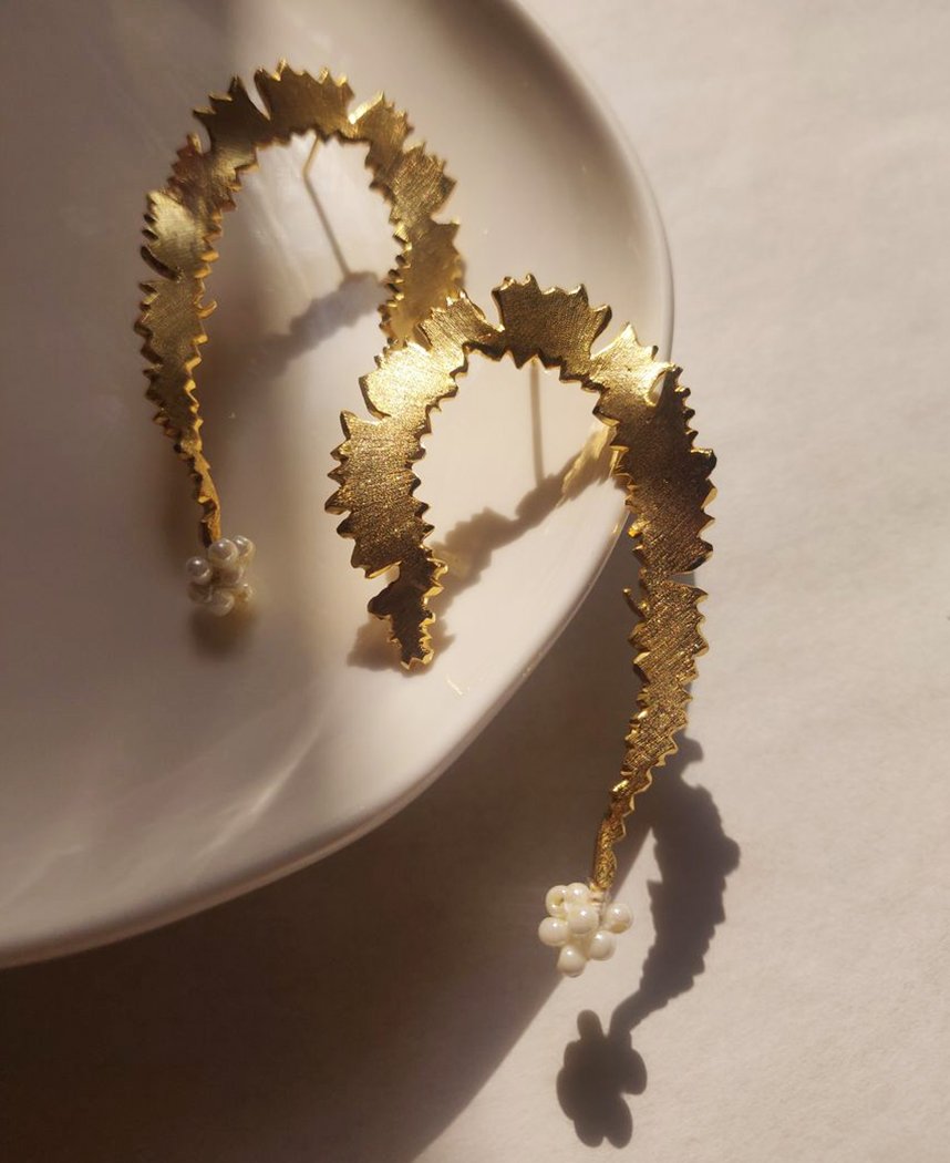 Horseshoe shaped earrings inspired by pencil shavings. Featuring a cluster of glass beads. Handcrafted in brass with nickle plating. Length 6.5cm.