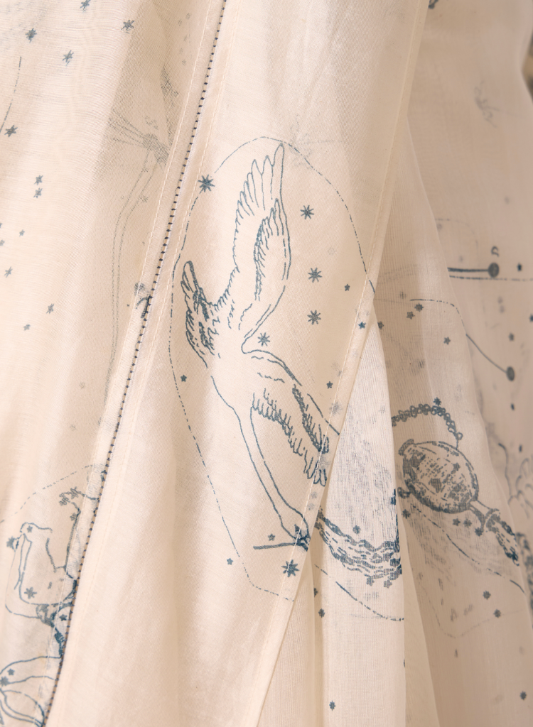 A classic saree featuring fagotting detail at the border and finished edges.The model 5'8 and wearing a size S.