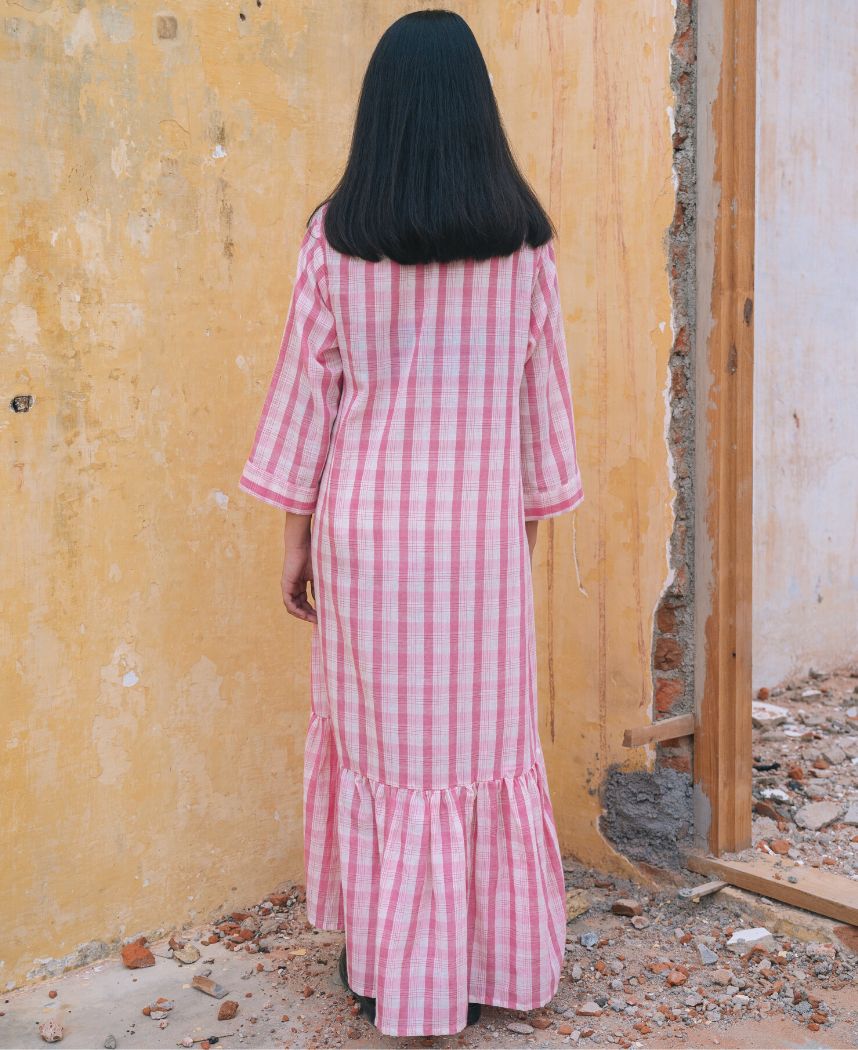 Made in handwoven cotton. Comes with a cotton slip dress.