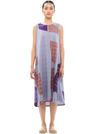 A sleeveless printed midi dress featuring a high round neck and in-seam pockets.
