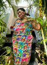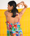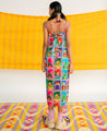 A digitally printed slip dress featuring a square neck and noodle straps. Length 47"-48" based on size. The model is 5'8" and is wearing size S.