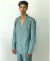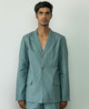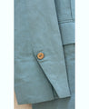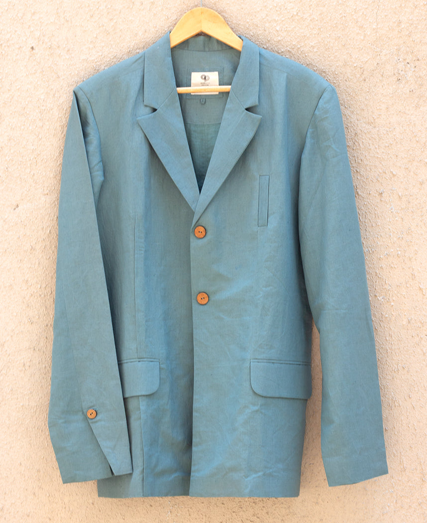 A single breasted blazer with drop shoulders featuring a lapel collar, a welt pocket, front closure and flap pockets. Length 30-31" based on size. The model is 6'1" and is wearing a size S.