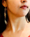 Twirly sparkling danglers handmade with a crochet needle and coloured yarn by women in the suburbs of Delhi.