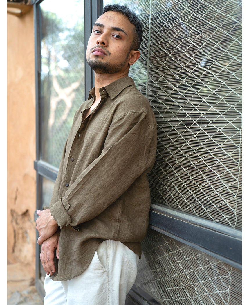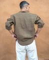 A classic long sleeve shirt featuring a front button placket and a box pleat detail at the back. Length 28.5"- 30". The model is 5'5.5" and is wearing a size M.