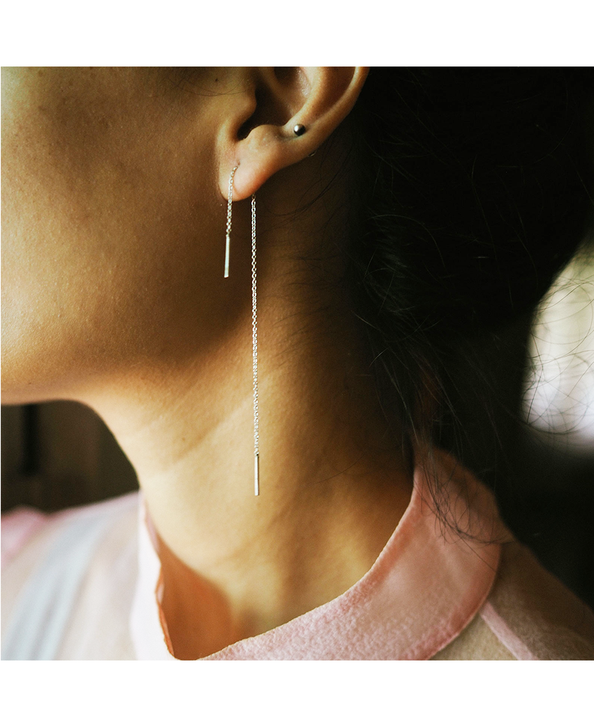Elegant chain earring resembling a thread and needle. Can be worn in one or multiple piercings. Perfect for layering. Made in light weight sterling silver.