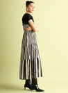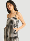 A striped maxi dress featuring a wide neck, adjustable straps and inseam pockets. Length 52"-54" based on size. The model is 5'9" and is wearing a size XS.