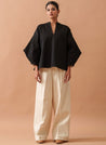 The tailored boxy-fitting pants with hand-sewn pintuck detail featuring a centre front zip-button fastening. Length 38". The model is 5'8" and is wearing size S.