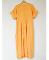 A relaxed fitting maxi dress featuring a round neck, a front button placket, cuffed sleeves and inseam pockets. Length 53".