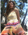 A fit and flare slip dress with a print inspired by the waves of an ocean. Features elasticated ruffle straps and a straight neck. Length 44".