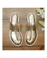 The Tarang Sandals are crafted in champagne gold faux leather with a hand cut upper and braided toe strap. Features cushioned insoles. Heel height - 6mm.