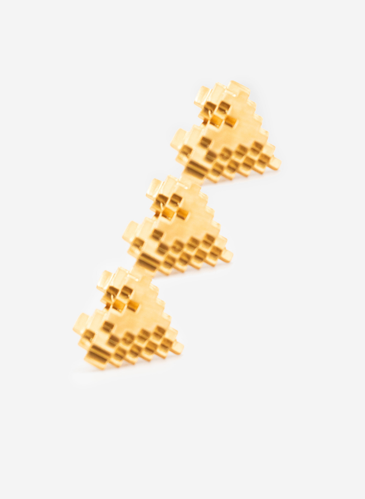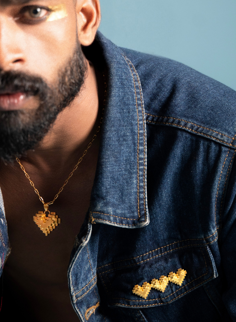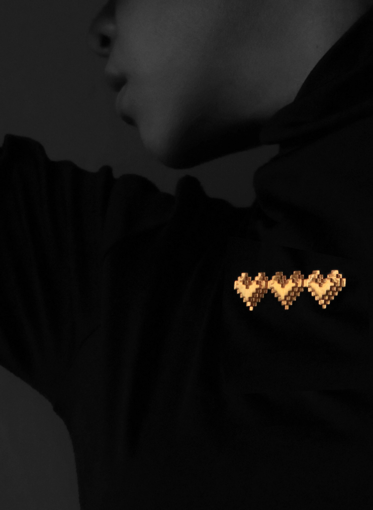 A wearable trophy for the bold-hearted. This is a pixelated medal for those who play fearlessly—a polished gold emblem of courage, grit, and the grind. Pin it on and let them know you’ve earned this.