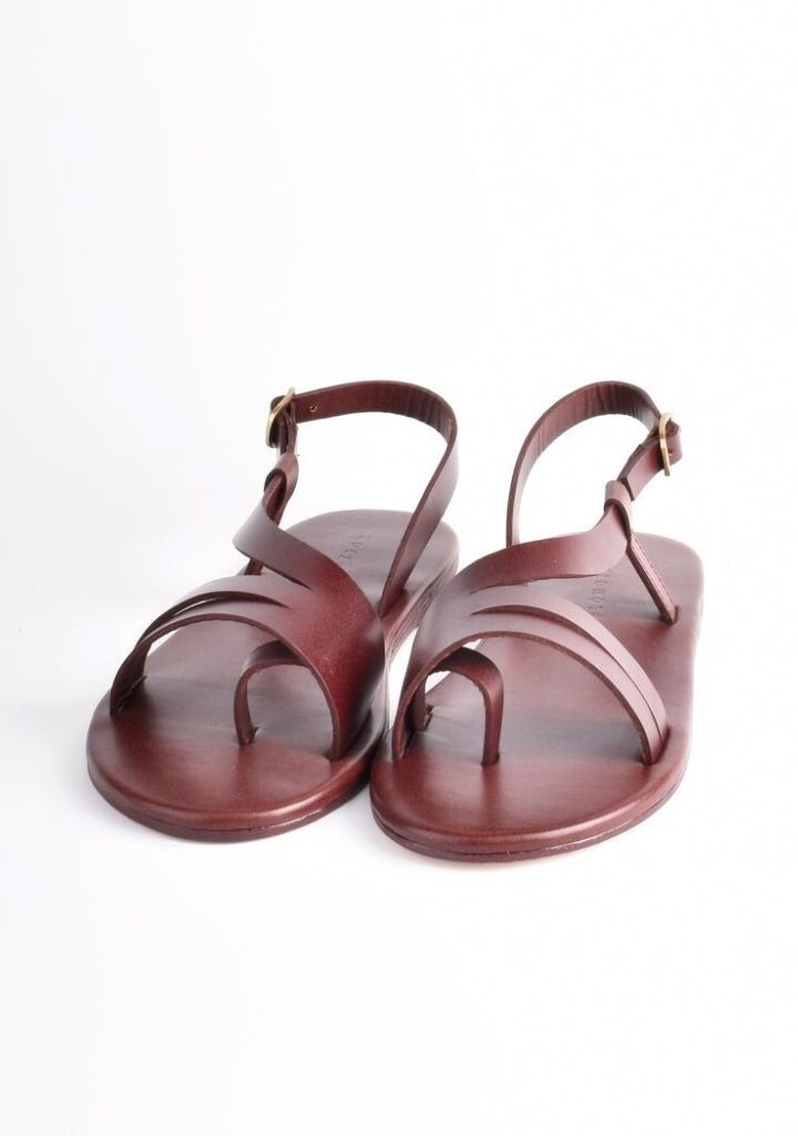 This style features over-foot triple straps with toe thumb support, that extends and fasten around the ankle with an adjustable brass buckle that grips your foot firmly.