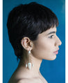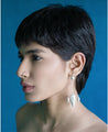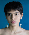 Drop earrings featuring petal shaped pieces inspired by traditional Kutchi and Tibetan jewelry. Made in 92.5 silver. Dimension : 8.5 cm x 3 cm.