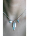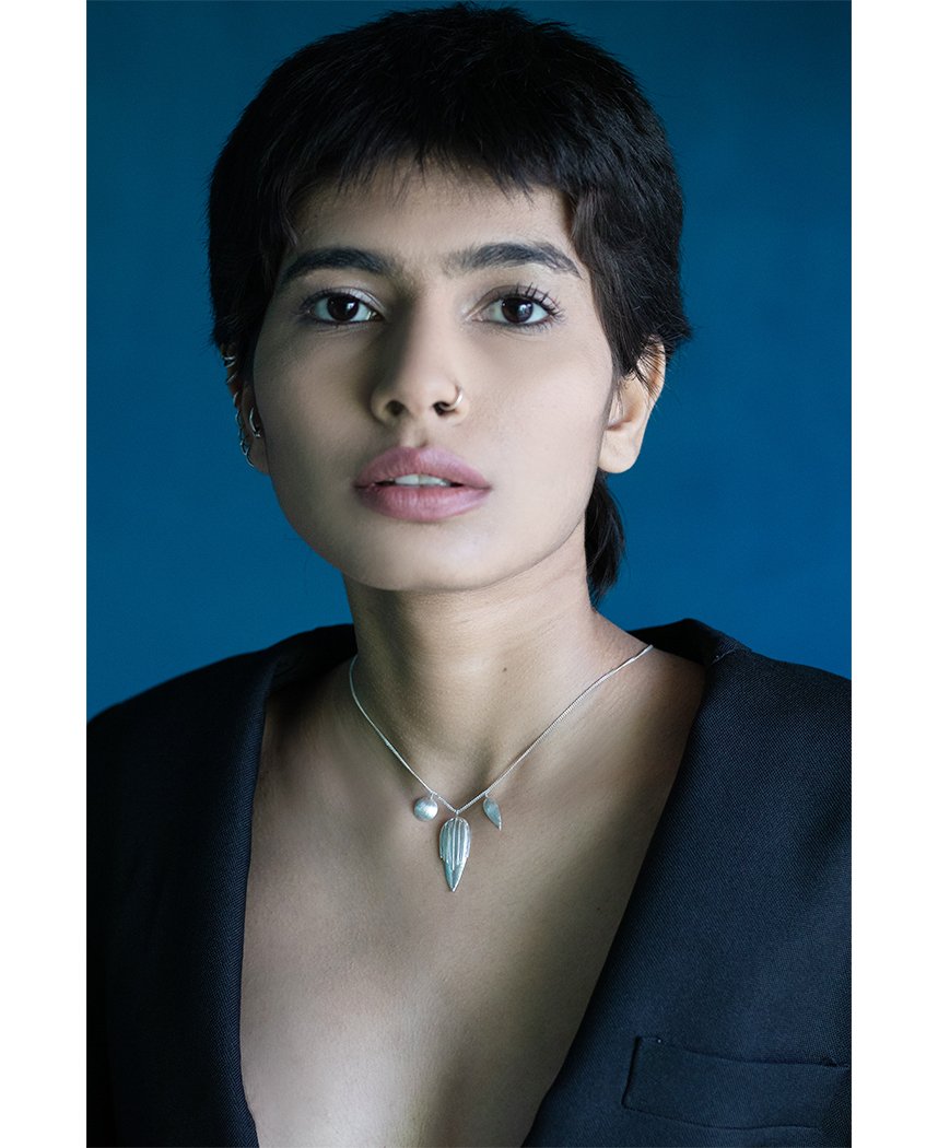 A simple charm necklace featuring petal shaped pieces inspired by traditional Kutchi and Tibetan jewelry. Made in 92.5 silver. Dimension : 40 cm x 32 cm. Store in a dry airtight container. Keep away from water and products like perfume, lotions, hairspray and makeup. Avoid contact with abrasive surfaces to prevent scratches or breakage. Clean the surface with a damp cloth if needed.