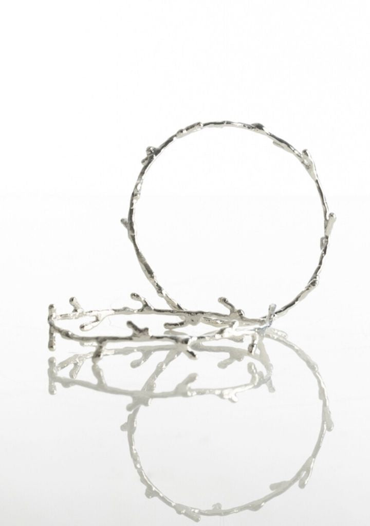 A statement thin bangle featuring an abstract twig shape making it unique. Dimensions 7cm.