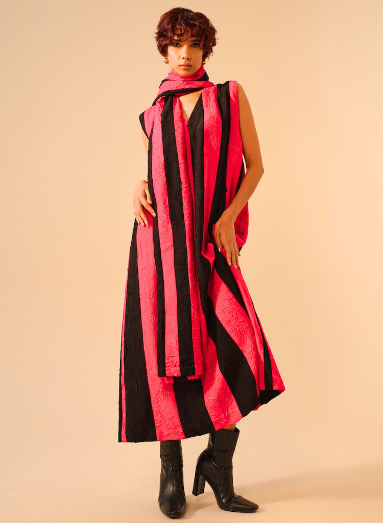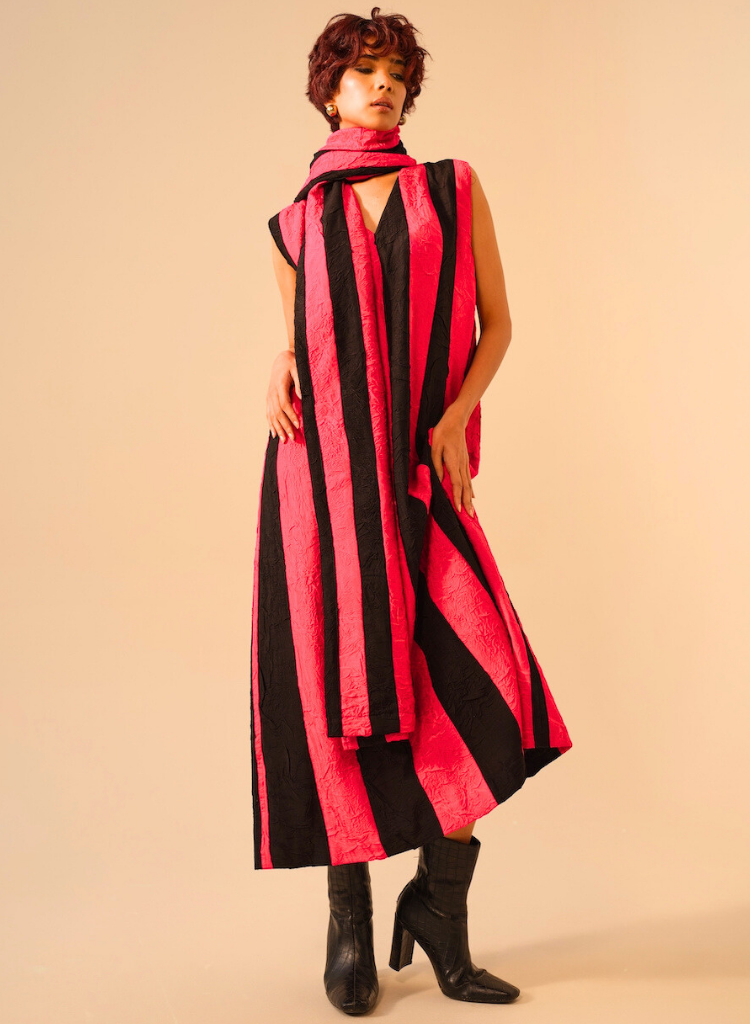 Lightweight yet tactile, this scarf features vertical patchwork detailing. Length 2.5 m.