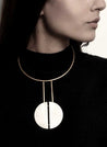 A statement geometric necklace handcrafted in brass.