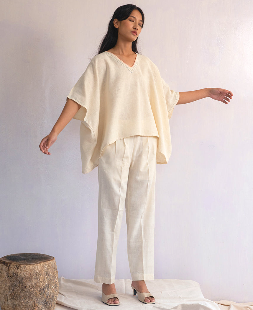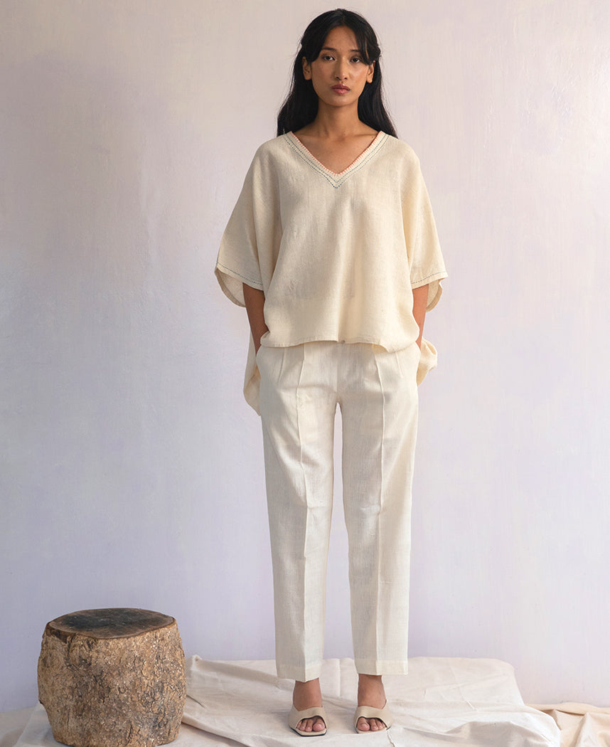 Made in Eri silk, naturally dyed. This piece is handcrafted in small batches using natural dyes. Variations in colour, texture, print and finish are inherent to the process, making each piece unique.