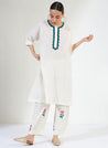 A relaxed-fitting kurta with hand embroidery details featuring a round neck and inseam pockets. Length 40".