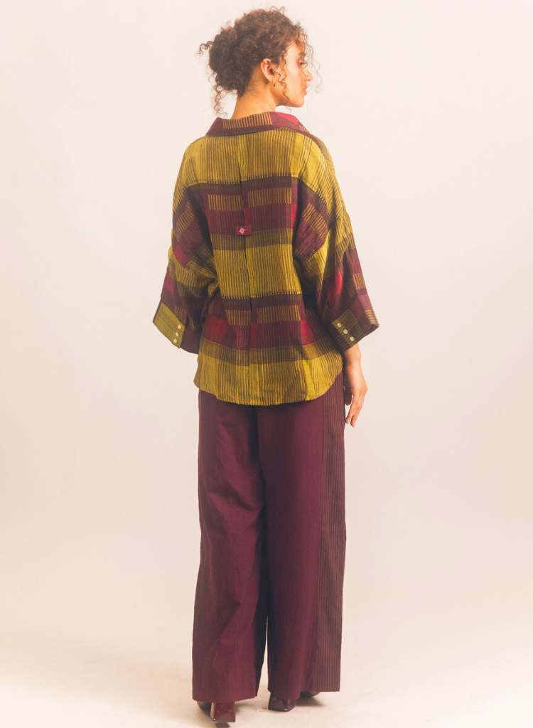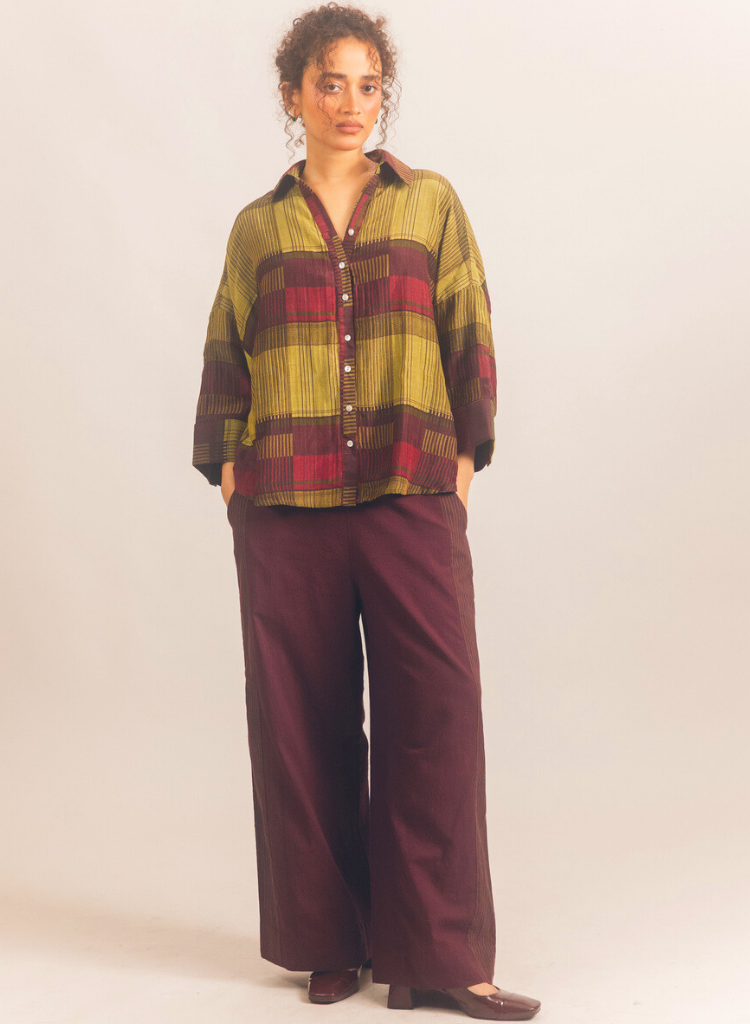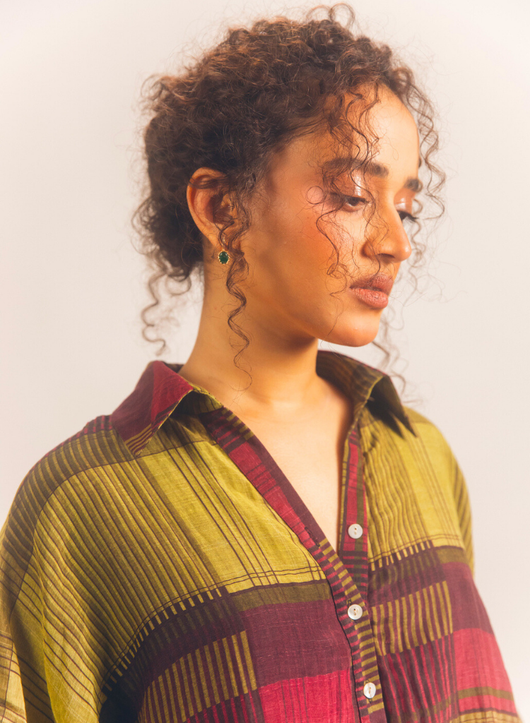 An oversized shirt featuring embroidery detail at the back. Length 28". The model is 5'7" and is wearing a size S.